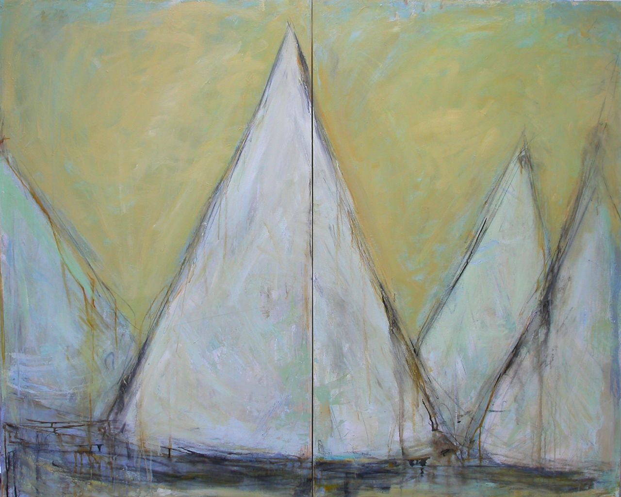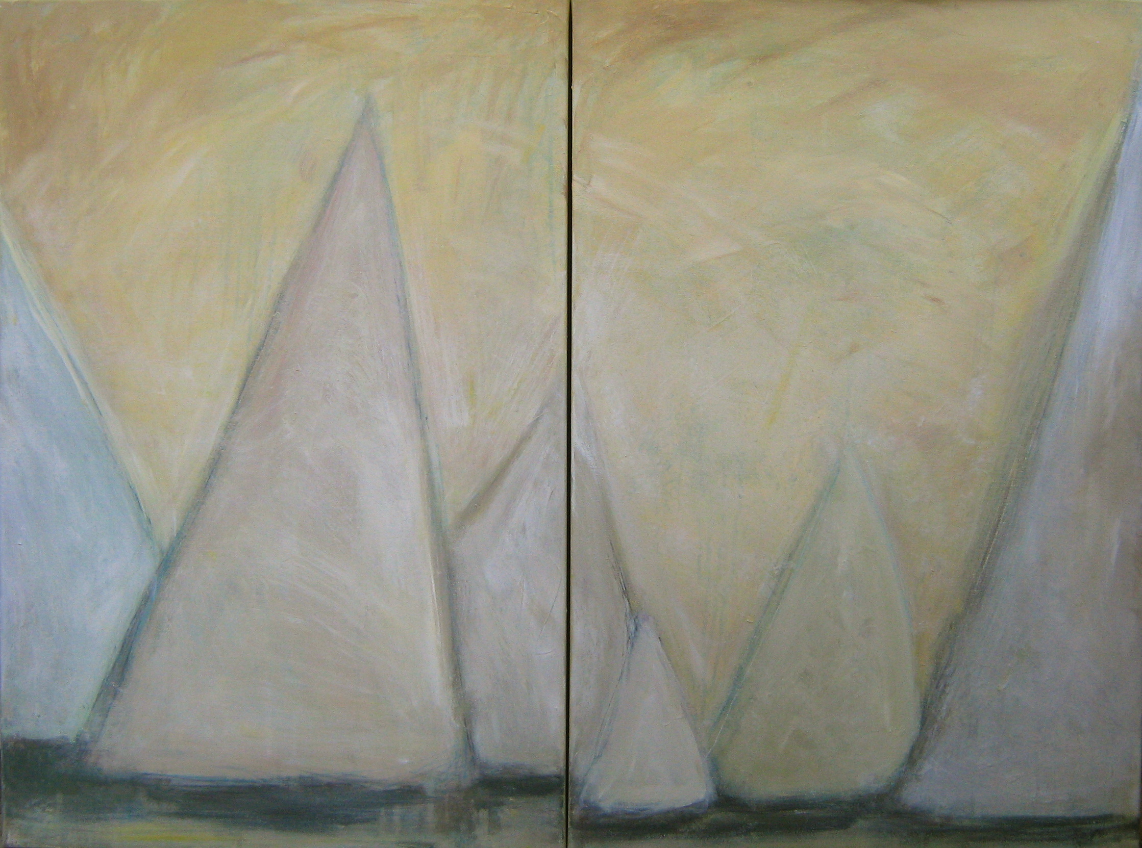 Large Sail Painting. Diptcyh, acrylic on canvas, 48 x 60″